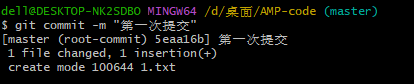 使用-m附加上提交要带上的信息,不过不加-m那么git就会进入一个交互式页面默认使用vim添加信息