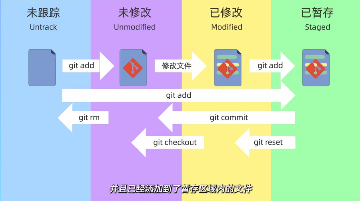 已修改(modified):我们修改了文件但是还没有参加到暂存区中