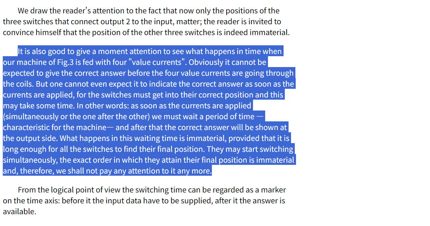 他假设了机械的几种迭代方式来说明一种抽象的概念的即---顺序和非顺序机械的区别和互相转换的点的。