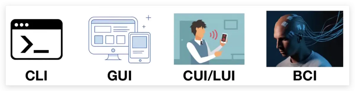 语言界面,Conversational User Interface, 简称CUI,或 Natural-Language User Interface,简称LUI ← 我们在这里