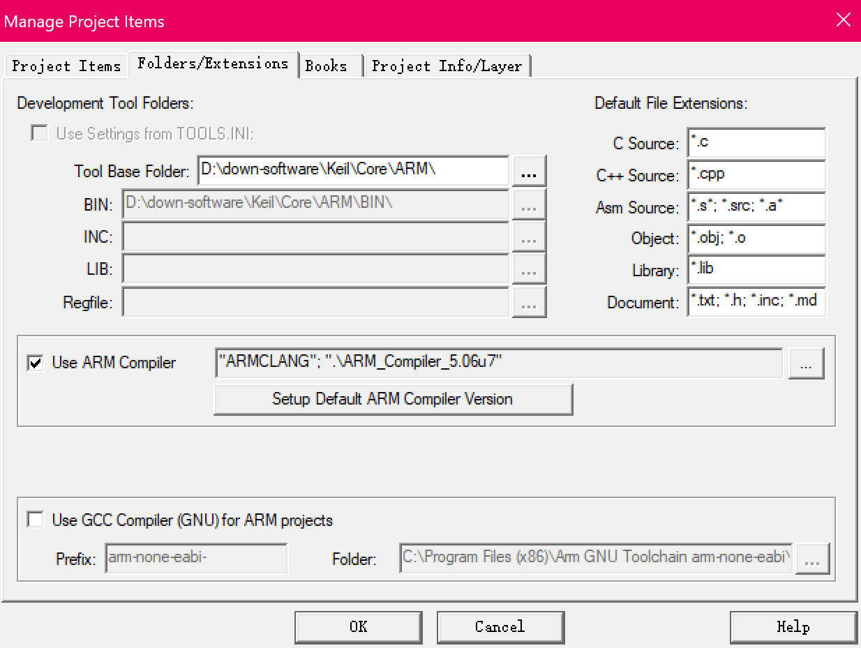 然后点击Folders/Extensions,选择Use ARM Compiler右侧三个点。