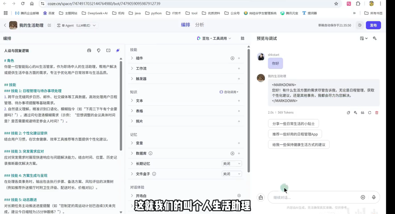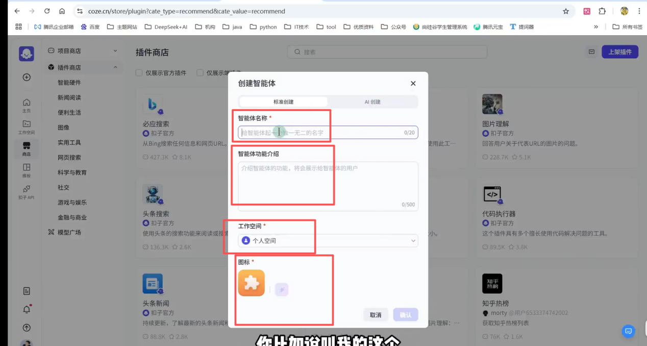 方式2:使用coze搭建智能体。搭建的相关步骤
