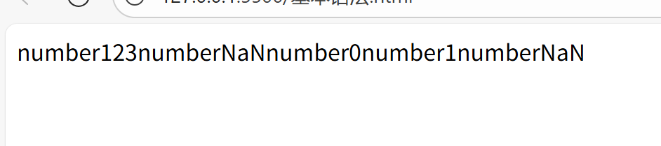 </head><body><script>// 将其他类型转换为Number类型//方法一:调用Number函数a = 123;b = Number(a);document.write(typeof b);document.write(b);//有非数字,则转换成NaNc = "123abc";d = Number(c)document.write(typeof d);document.write(d);//为空值或一个空格,转换成0var e = null;f = Number(e);document.write(typeof f);document.write(f);//为布尔型,转为数字,0,1var g = true;h = Number(g);document.write(typeof h);document.write(h);//调用parseint()函数将a转换为Number,读到非数字结束j=parseInt(g);document.write(typeof j);document.write(j);</script>