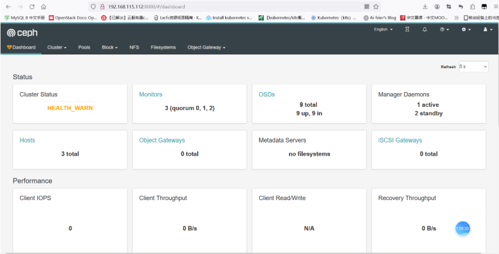 ceph config set mgr mgr/dashboard/server_port 8000#重启 dashboard
