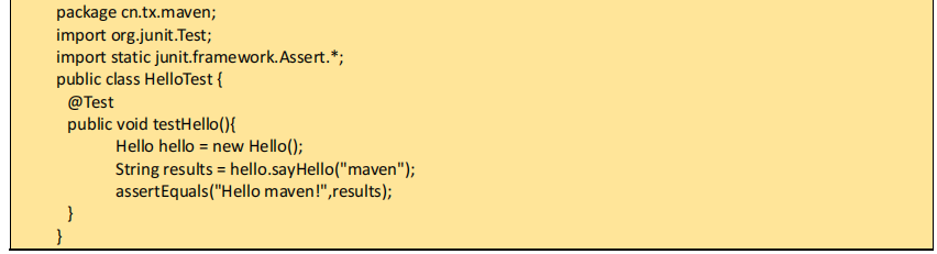 在/src/test/java/cn/tx/maven 目录下新建测试文件 HelloTest.java