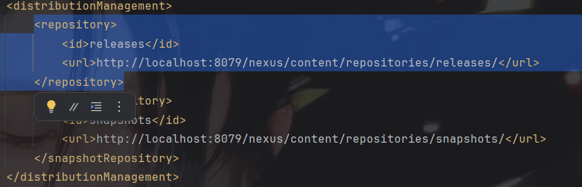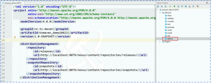 配置项目pom.xml,配置私服仓库的地址,本公司的自己的jar包会上传到私服的