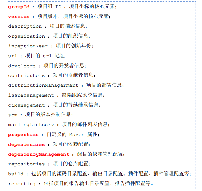 artifactId、version、packaging、classifier。上述 5 个元素中,groupId、