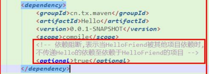 可以在B项目中的pom文件中找到C项目这个依赖 写一个标签
