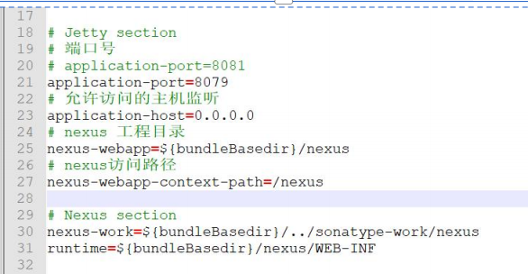 查看conf文件下的nexus.properties配置文件,可以修改对应的配置