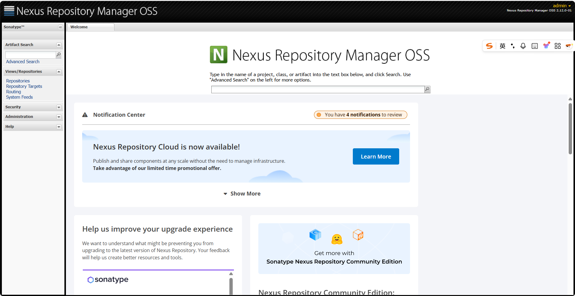 4访问图形化界面:打开浏览器,输入http://localhost:端口号/nexus访问