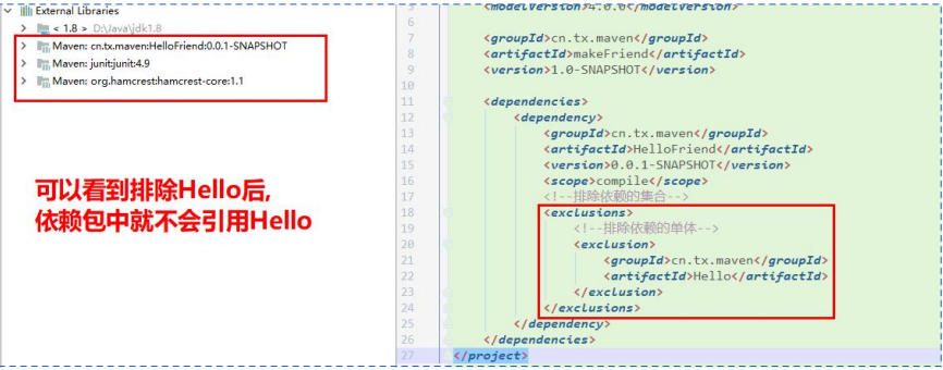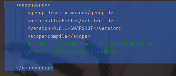 如果我们需要在依赖中明确的排除掉某一依赖,则可以使用exclusion属性,排除掉