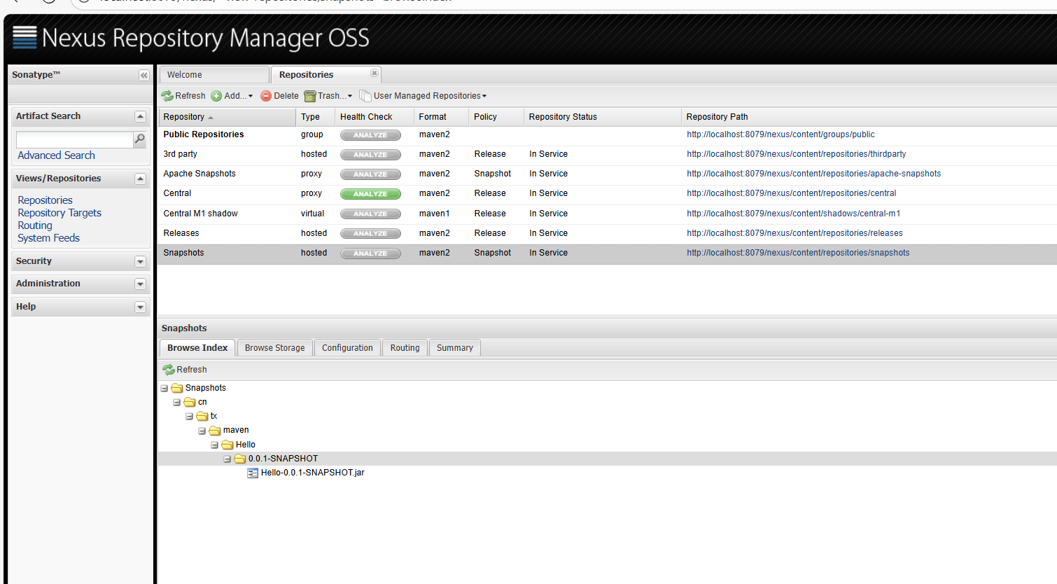 两部分,Releases公司内部发布版本仓库、Snapshots公司内部测试版本仓库