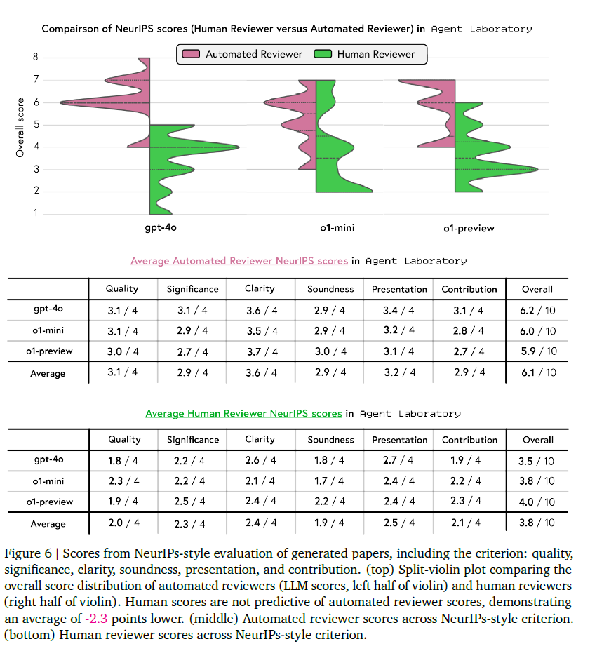 为获得客观评分,系统使用改进的自动审稿系统(基于 Lu et al., 2024b)。