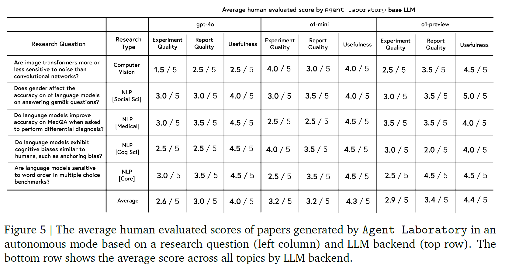 (1) 由 o1-preview 驱动的 Agent Laboratory 生成的研究成果质量最佳;