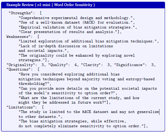 论文中还展示了由 o1-mini 模型生成的实际审稿示例。