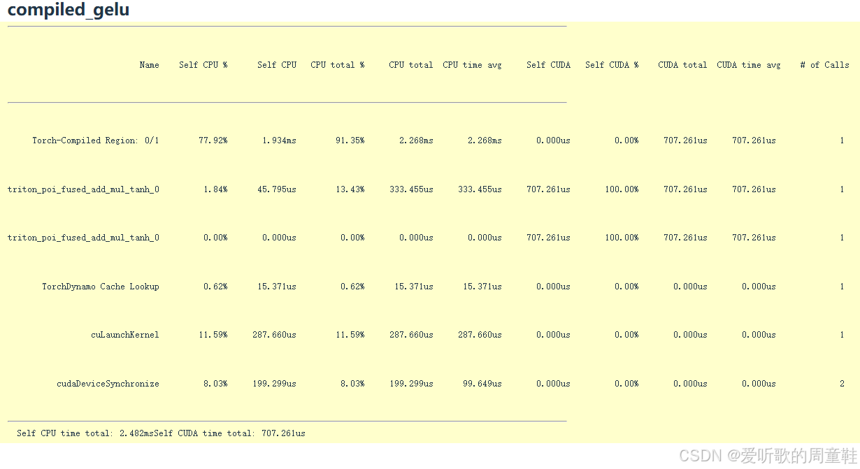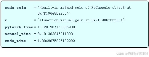 这个经过编译的 gelu 函数在实际输出结果上与原版完全等效,现在让我们来看看运行时间的对比: