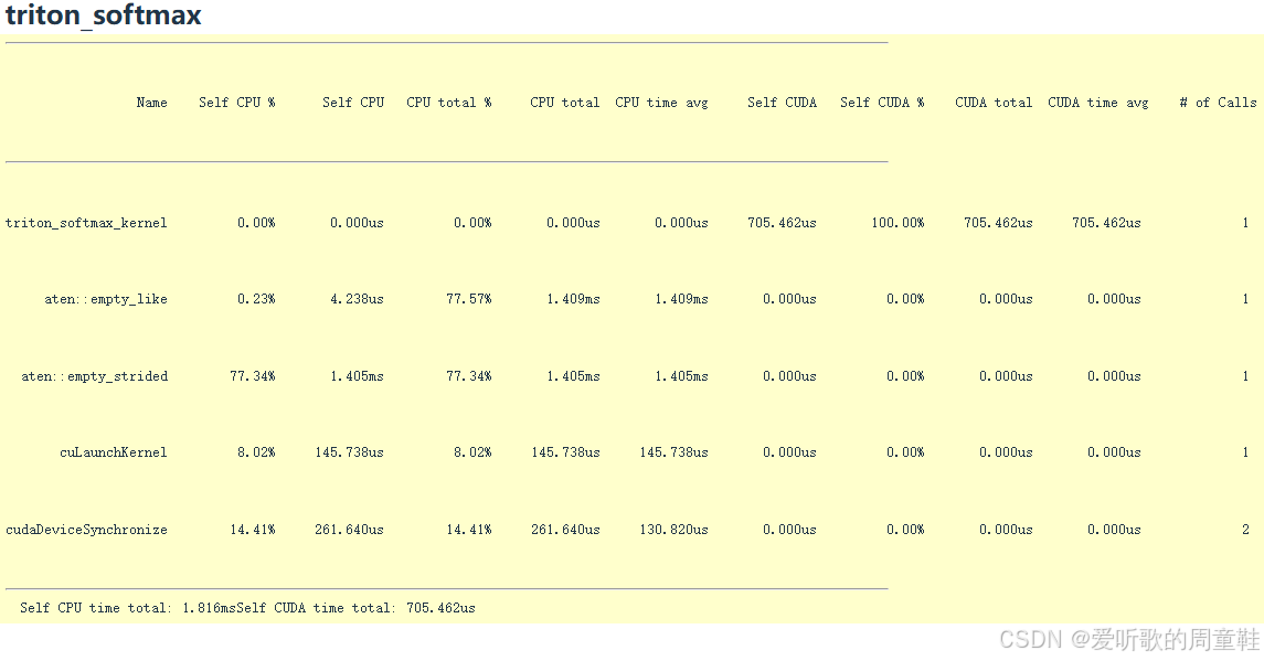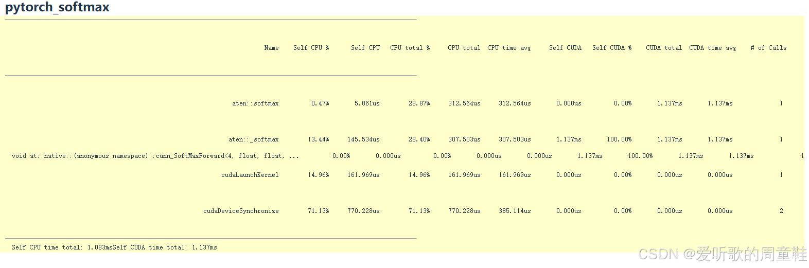 PyTorch 的 softmax 同样只需调用一个 CUDA 内核