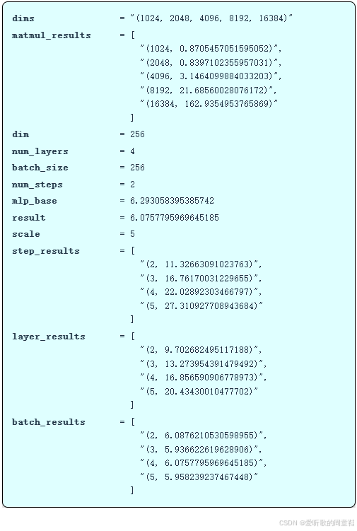 当然,在每次运行结束时我们都会调用 torch.cuda.synchronize() 和 CPU 状态同步,这样当 CPU 执行进度领先时,它会在此处等待 GPU 实际完成运算,反之亦然。测试完成后,我们还将计算平均值,由于 GPU 的预热特性等因素可能导致单次测量结果波动,因此需要多次重复测量,取其均值作为最终结果返回