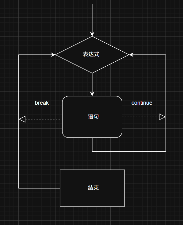 首先上来就是执行判断表达式,表达式为0,循环直接结束;表达式的值不为0,执行循环语句,语句执行完继续判断,是否进行下一次判断。