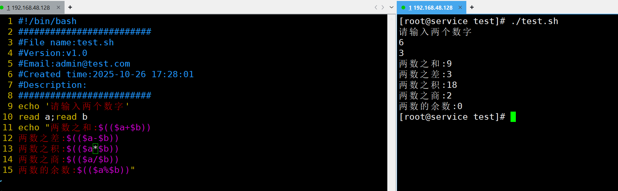 练习1:计算用户输入的任意两个整数的和、差、乘、商、余数。