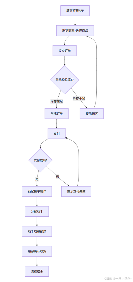 系统:校验库存 -> 生成订单 -> 分配骑手
