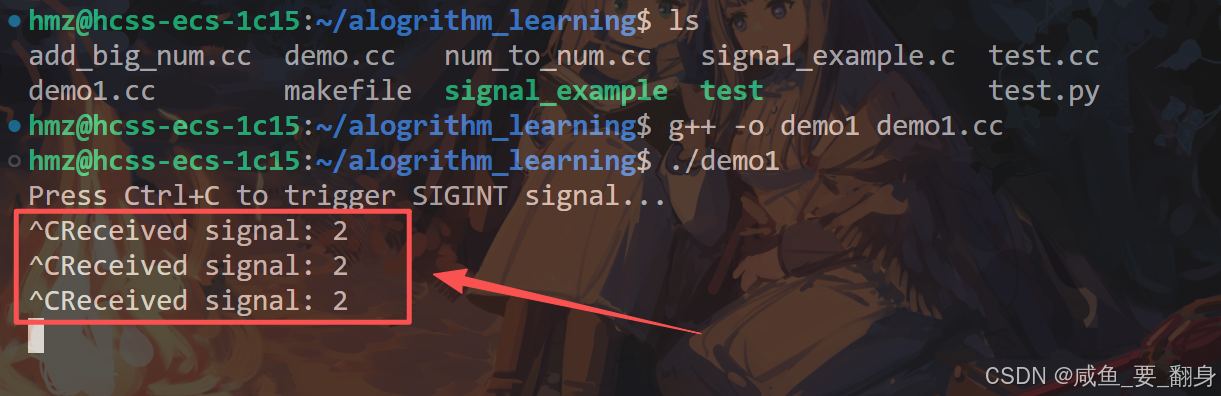 这是一个典型的信号捕获示例,展示了如何改变信号的默认行为!