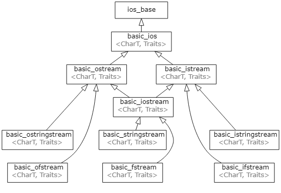 class basic_iostream : public basic_istream<CharT, Traits>, public basic_ostream<CharT, Traits> {// 输入输出流相关实现