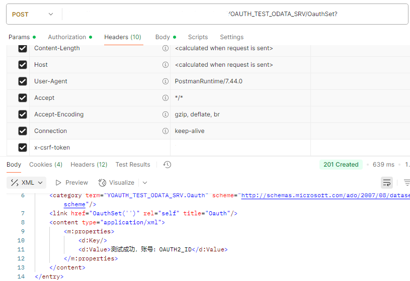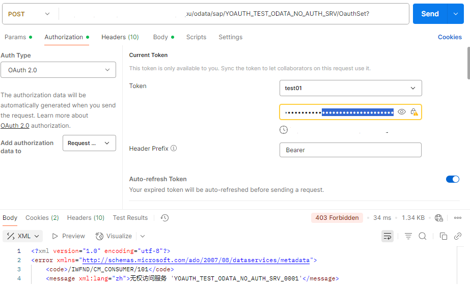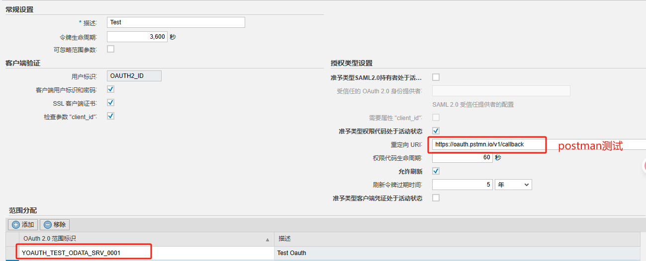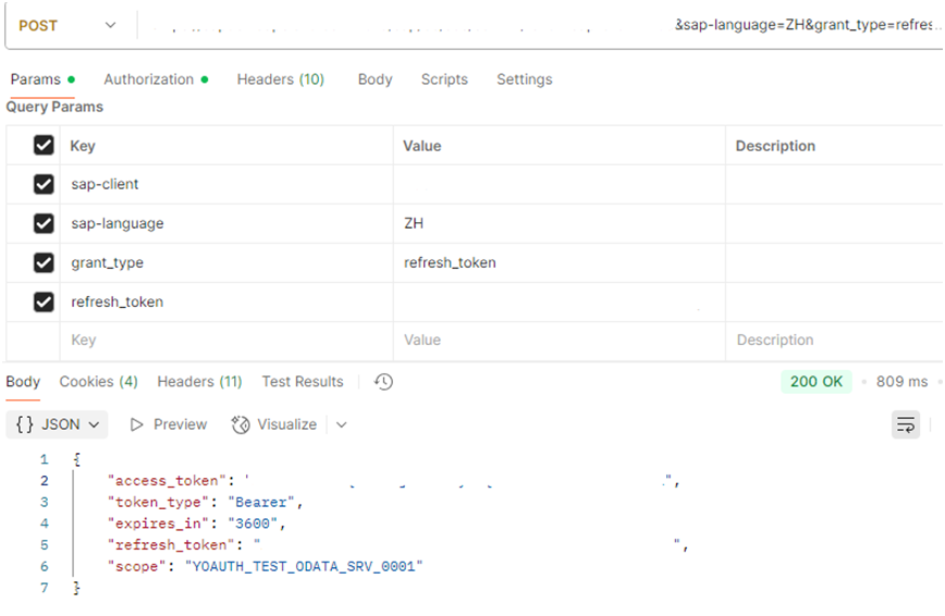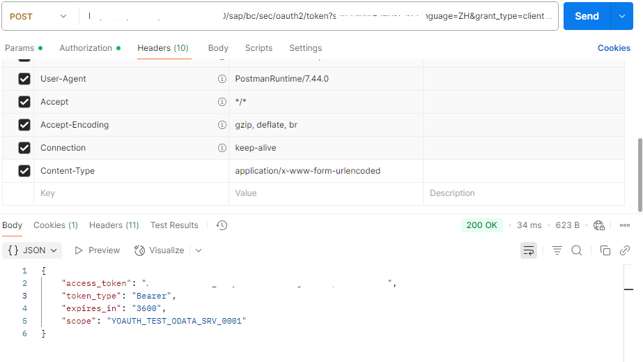 地址:https://XXX/sap/bc/sec/oauth2/token?sap-client=&grant_type=client_credentials&scope=YOAUTH_TEST_ODATA_SRV_0001