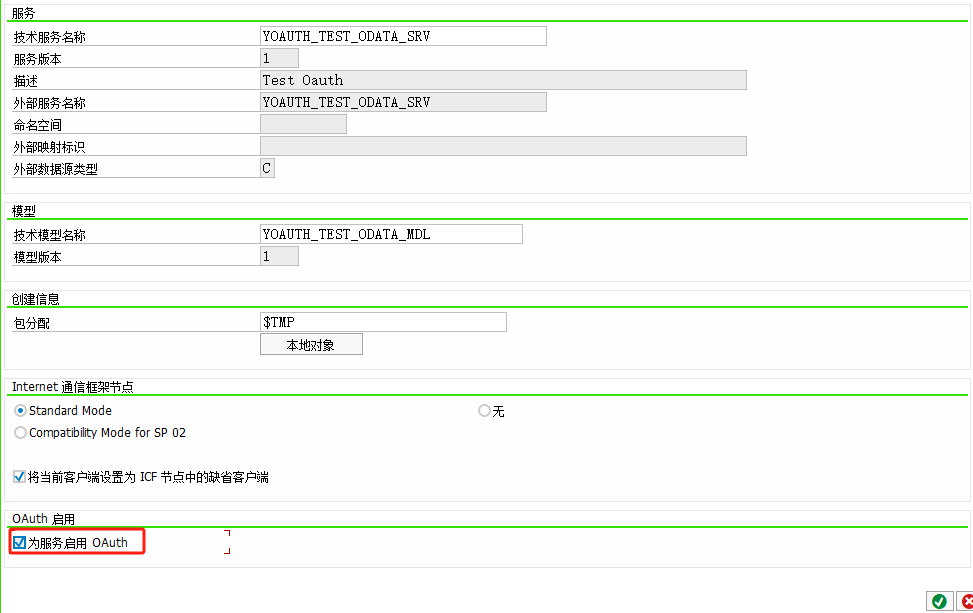 事务/n/IWFND/MAINT_SERVICE 添加该服务并启用OAuth