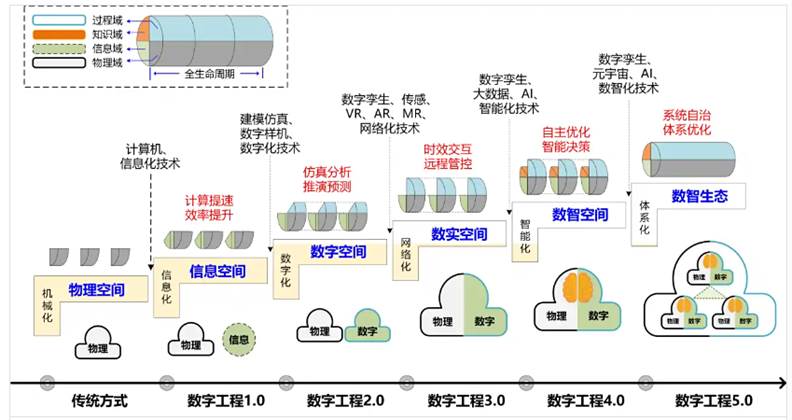 数字工程是一种通过整合新一代信息技术、数字技术及人工智能技术,构建数字世界以提升体系化解决问题能力的工程范式 。