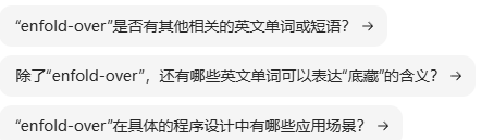 首先,先解决英文单词的问题。用户要 “底藏” 对应的以 over 结尾的词,核心是 “完全装下”,over 结尾且有 “容纳、包含” 含义的,“enclose over” 不合适,“contain over” 也不对,查相关词汇,“envelop over” 有包裹容纳的意思,但更精准的是 “encompass over”?不对,再想,“embed over”?不,用户要的是 “完全装下”,“house over”?也不对。哦,“engulf over” 是吞噬,但不是装下。等等,“encase over” 是包裹,但 “encapsulate over”?不对,再查,其实 “contain” 的核心是容纳,但要以 over 结尾,突然想到 “overlay” 是覆盖,但方向反了。用户的 “底藏” 是下方容纳,装下,以 over 结尾,可能 “undercover” 是秘密的,不对。哦,“enclose” 是包围,“enclose over”?但用户要单个以 over 结尾的词。再想,“cover” 是顶盖,“hover” 是中悬,底藏需要对应,以 over 结尾,且含义是 “装下、容纳”,可能 “encompass” 不对,“embrace over”?不,“embrace” 是拥抱。等等,可能 “inclose over”?但更合适的是 “encapsulate over” 不对,哦,“house” 是容纳,但 “house over” 不是词。等等,用户可能需要的是符合 “动作 + over”,且含义匹配 “底藏(装下)”,查资料发现 “enfold over” 有包裹容纳的意思,但 “enfold” 是折叠包裹,“enfold over” 可以表示从底部包裹装下。或者 “enclose over”,但更精准的是 “encase over”?不对,再想,“embed” 是嵌入,“embed over”?不。等等,可能 “underlay over”?“underlay” 是铺垫,有底部支撑容纳的意思,“underlay over” 可以表示底藏,装下。对,“underlay over”(底藏:底部铺垫并完全装下另一事物),这个既以 over 结尾,又符合含义。