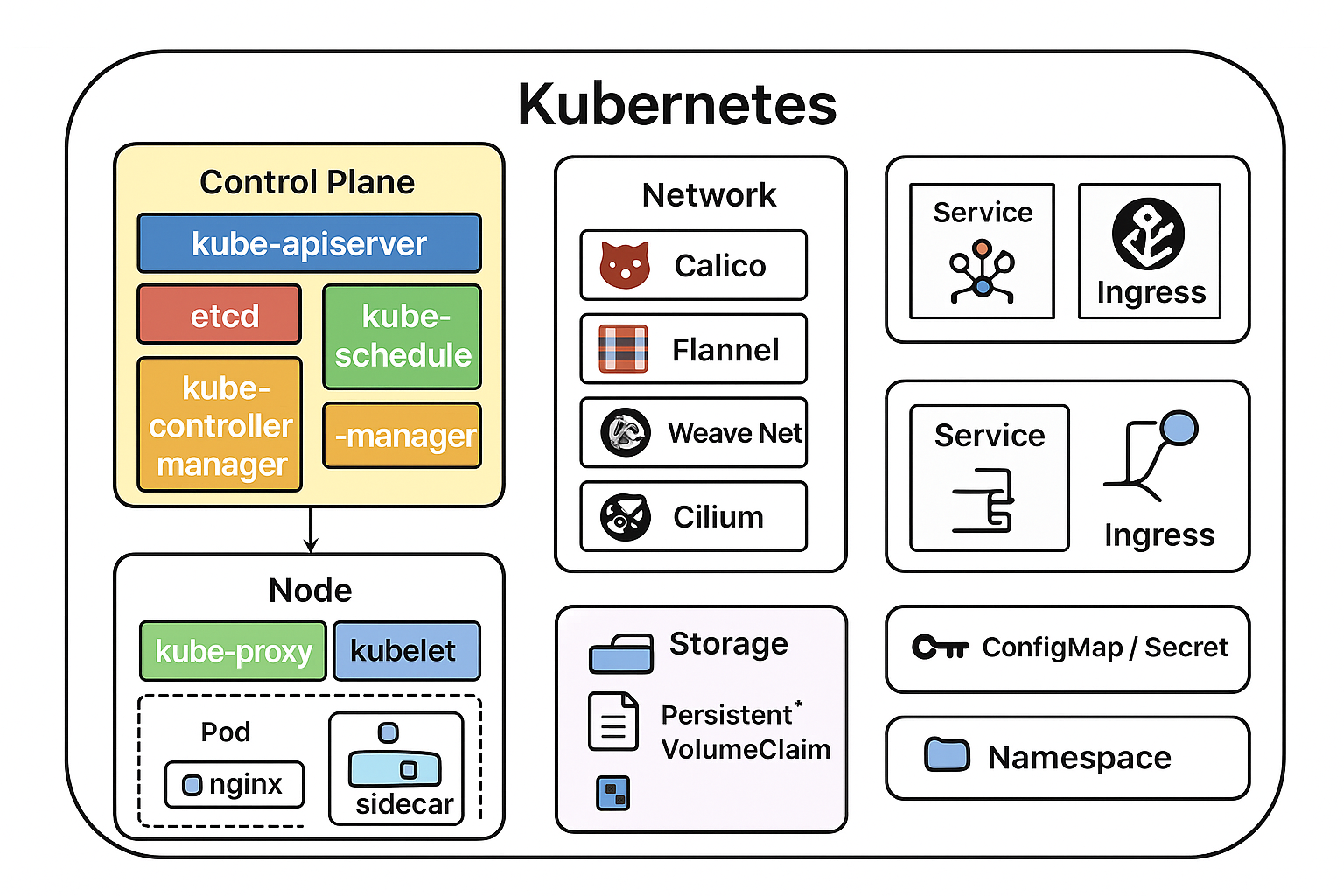 | DNS(CoreDNS) | Pod 内部域名解析,Service 名称解析 |