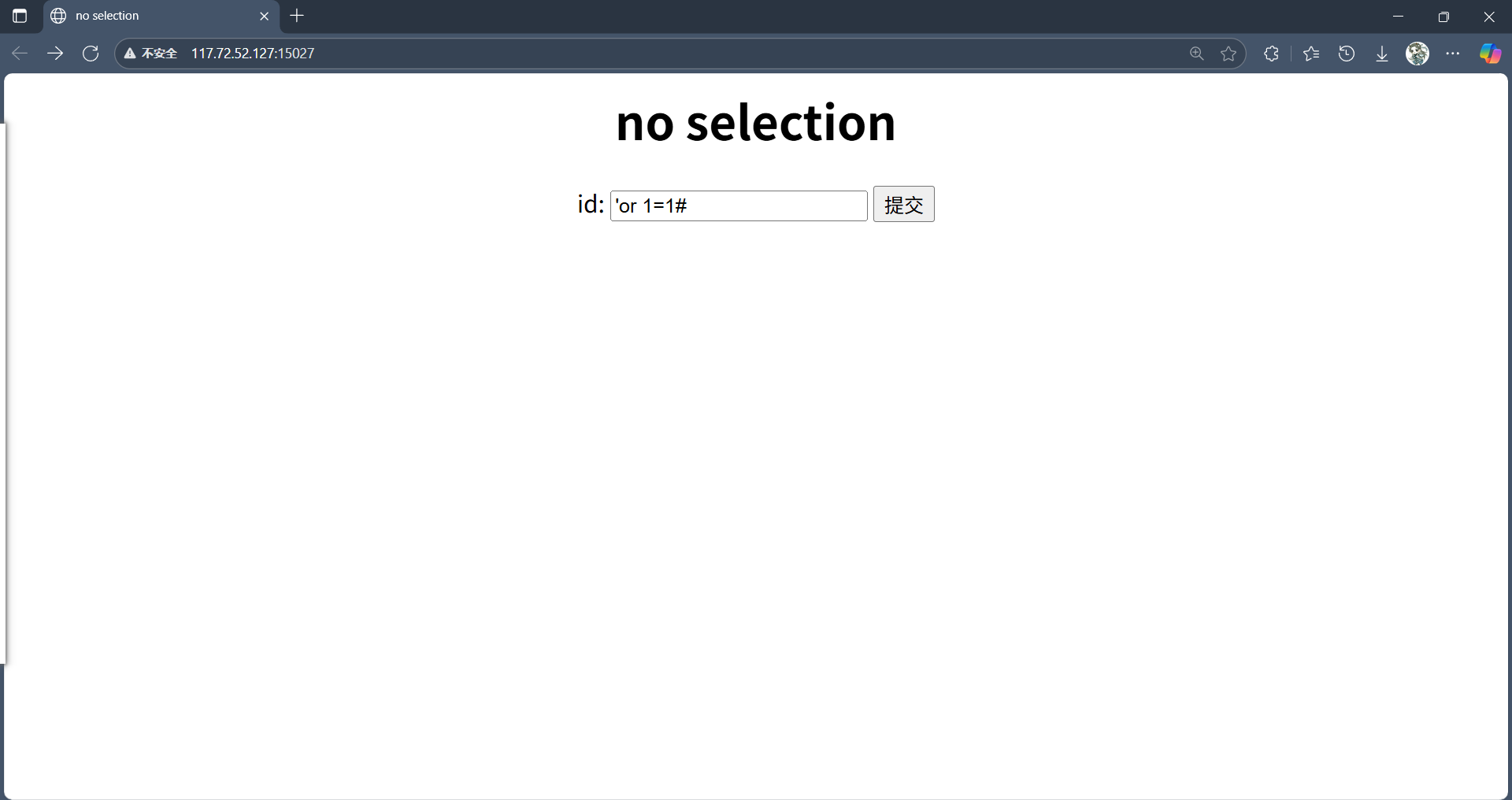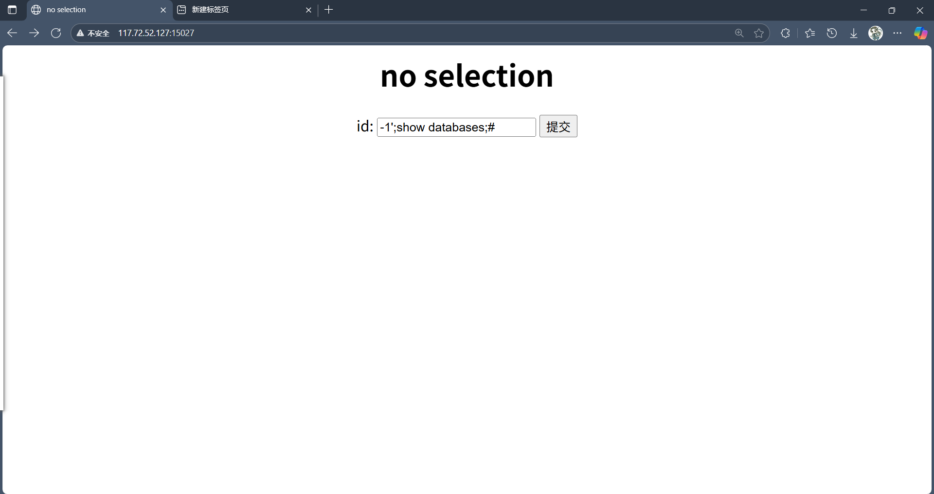 是一个sql注入的题目,看题目叫做no selection 应该是把select给过滤了