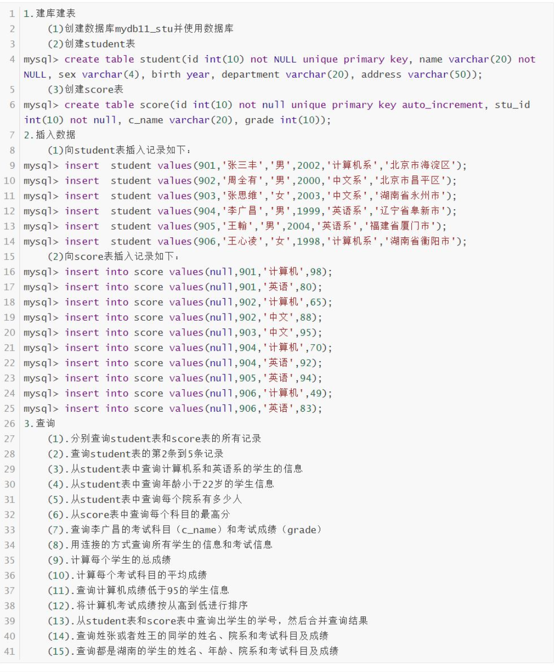 (13)从student表和score表中查询出学生的学号,然后合并查询结果