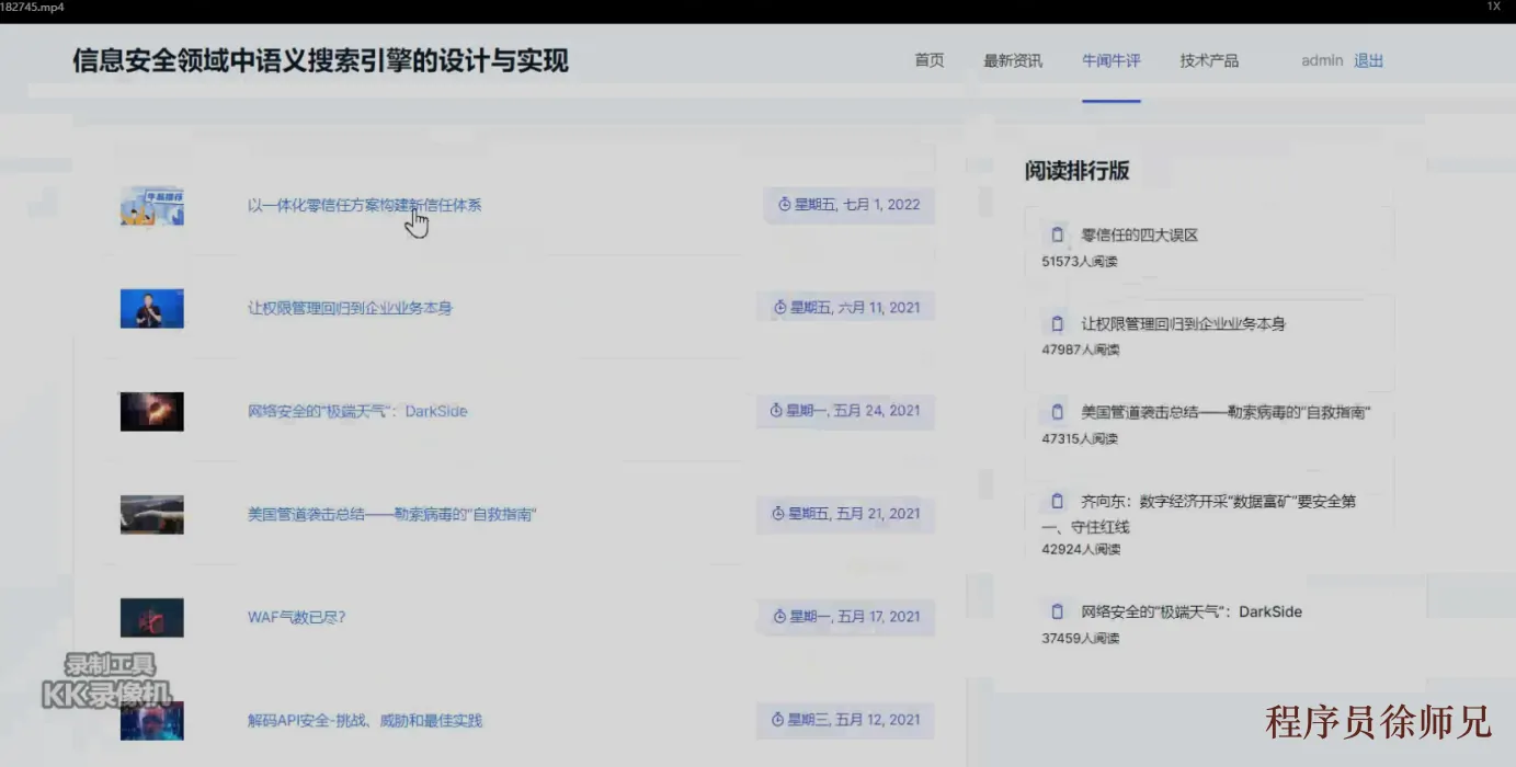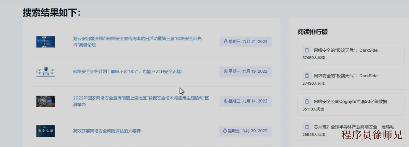 在最新资讯中,有着非常多的关于信息安全领域的相关文章,以列表的形式展现在整个页面中,能够看到新闻的标题、发布时间等简单的内容,点击标题后可以进入到详细的页面之中。如下图所示: