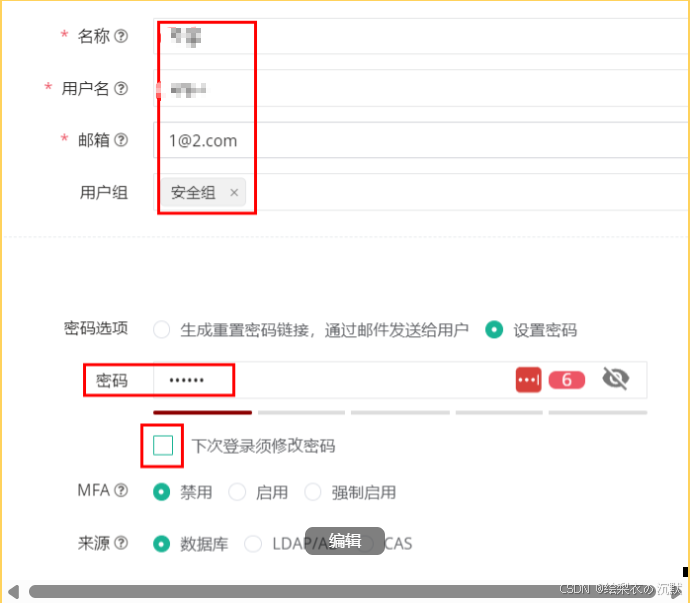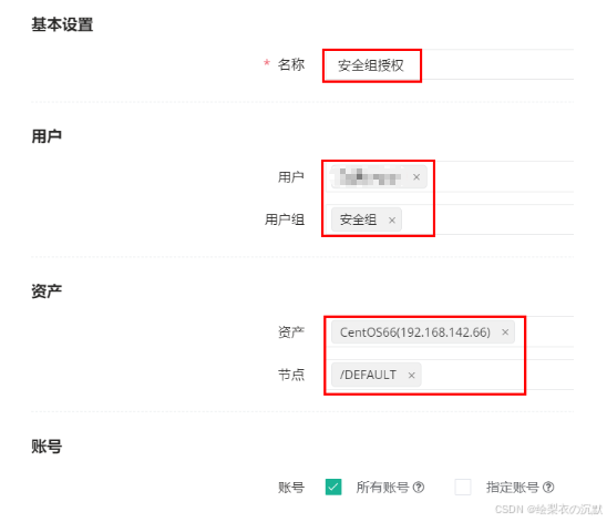 添加到“安全组”,演示中我们给这个用户直接设置登录堡垒机系统的密码。