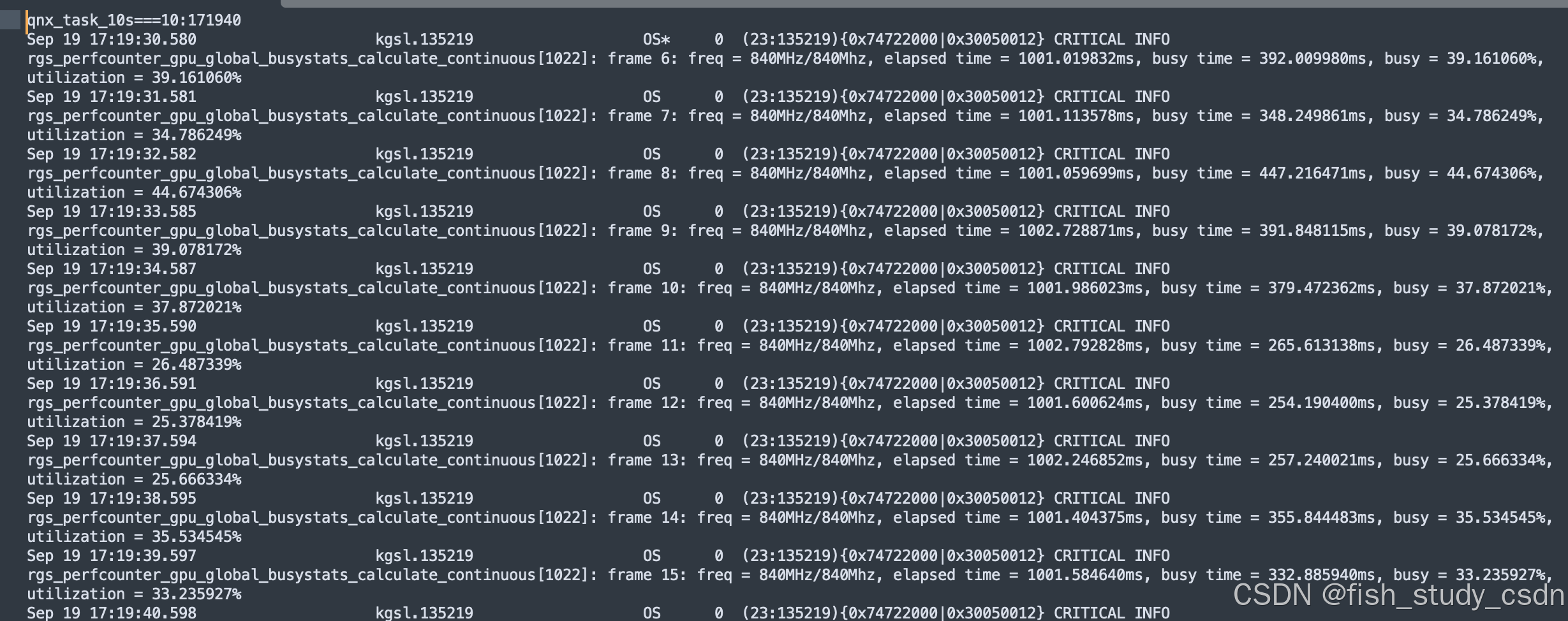 如上图:第一个标黄的busy 73.33%表示整个GPU消耗