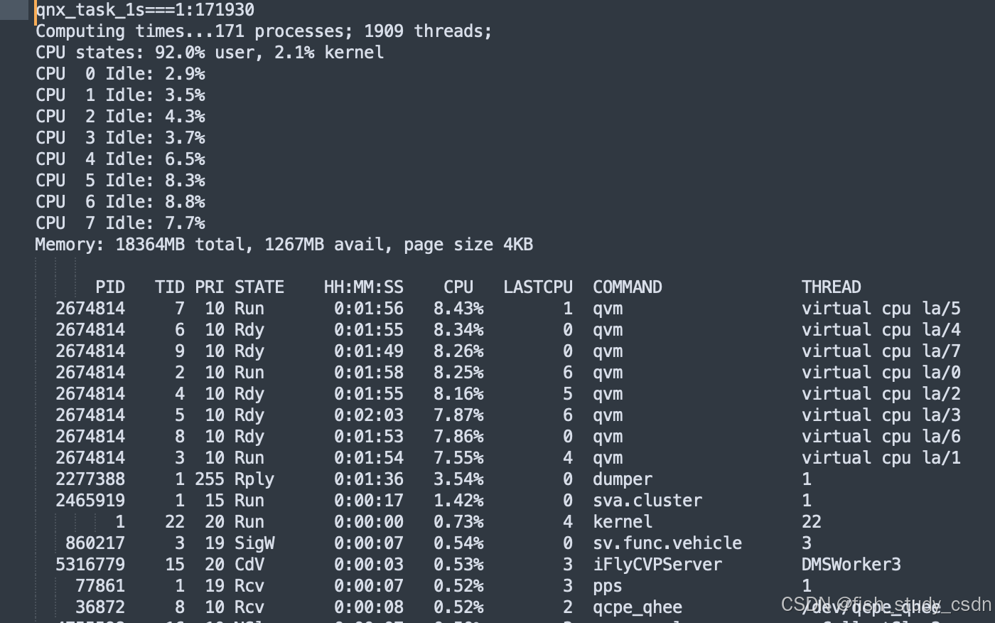 2 查看QNX系统CPU(也表示整个系统的CPU)