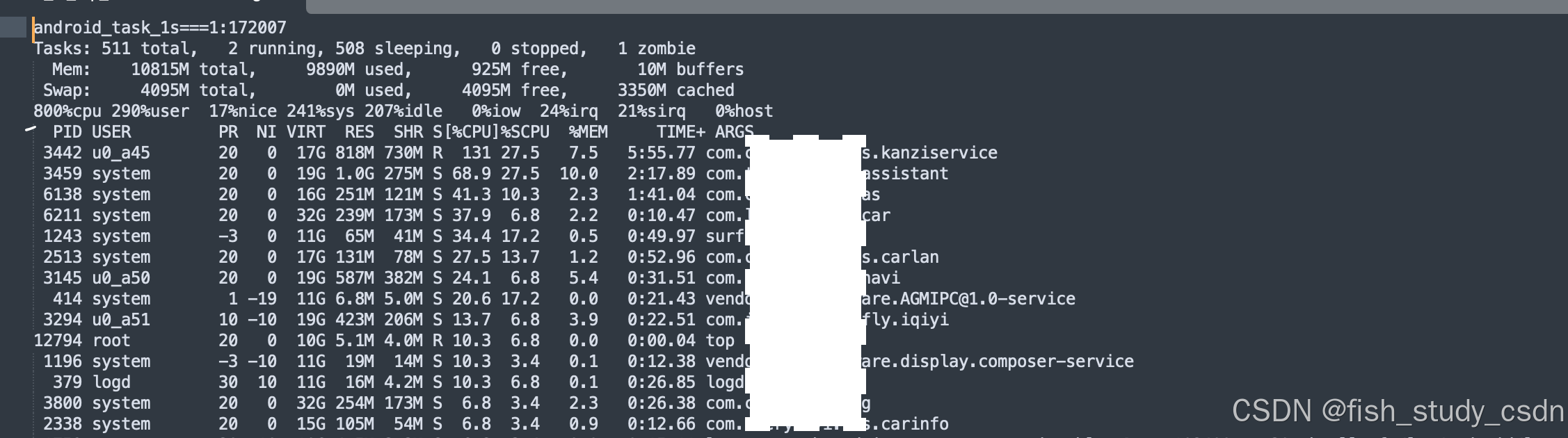 上面截图中:idle中的字段表示android整个系统的可用的算力。总大小为800%