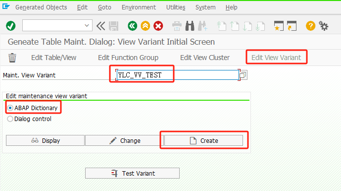 事务代码SE54,切换到编辑视图变式,填写完成后点击创建