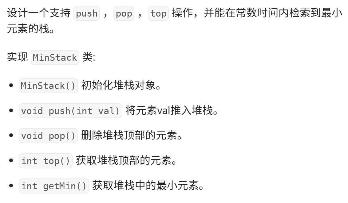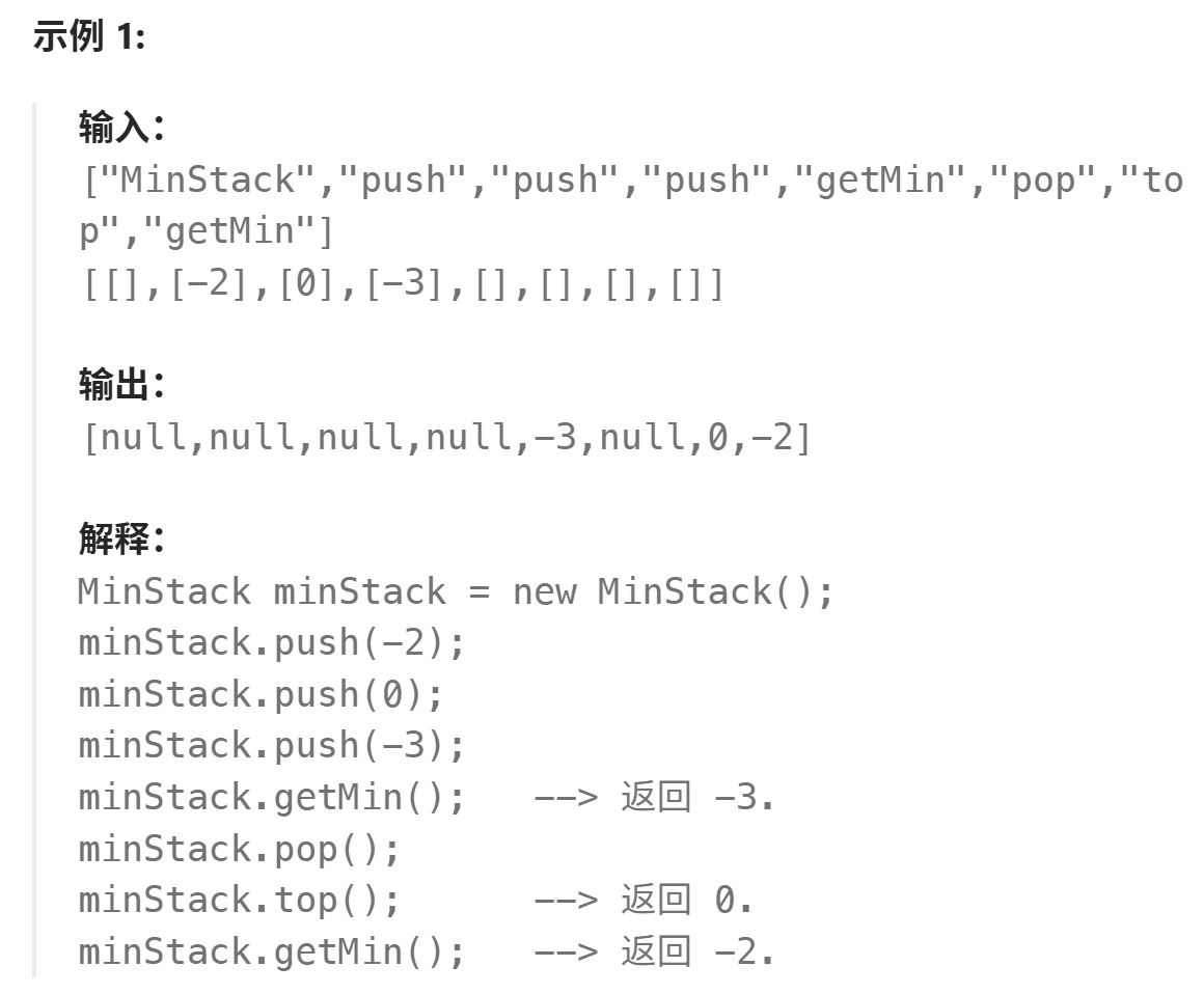 题目要求我们设计一个栈,其他的都还好说,C++已经提供好了 stack ,唯一需要我们解决的就是获取栈中最小的数。