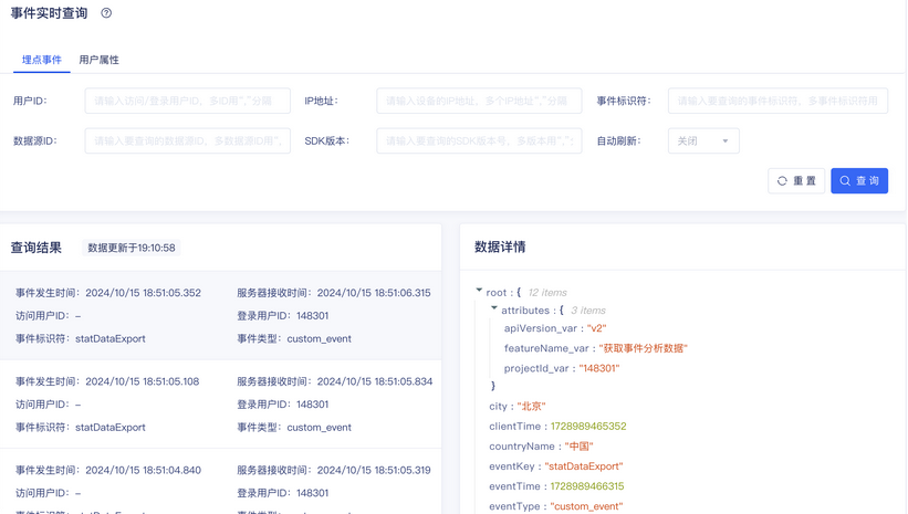 实时上报埋点测试:可视化埋点测试的实现还是有点难度,如果短期做不到,那实时上报埋点测试一定是要支持的,即测试或产品在终端操作时,能有一个区域可以实时接收到埋点数据,从而验证操作后是否正确收集到了数据,如下图;