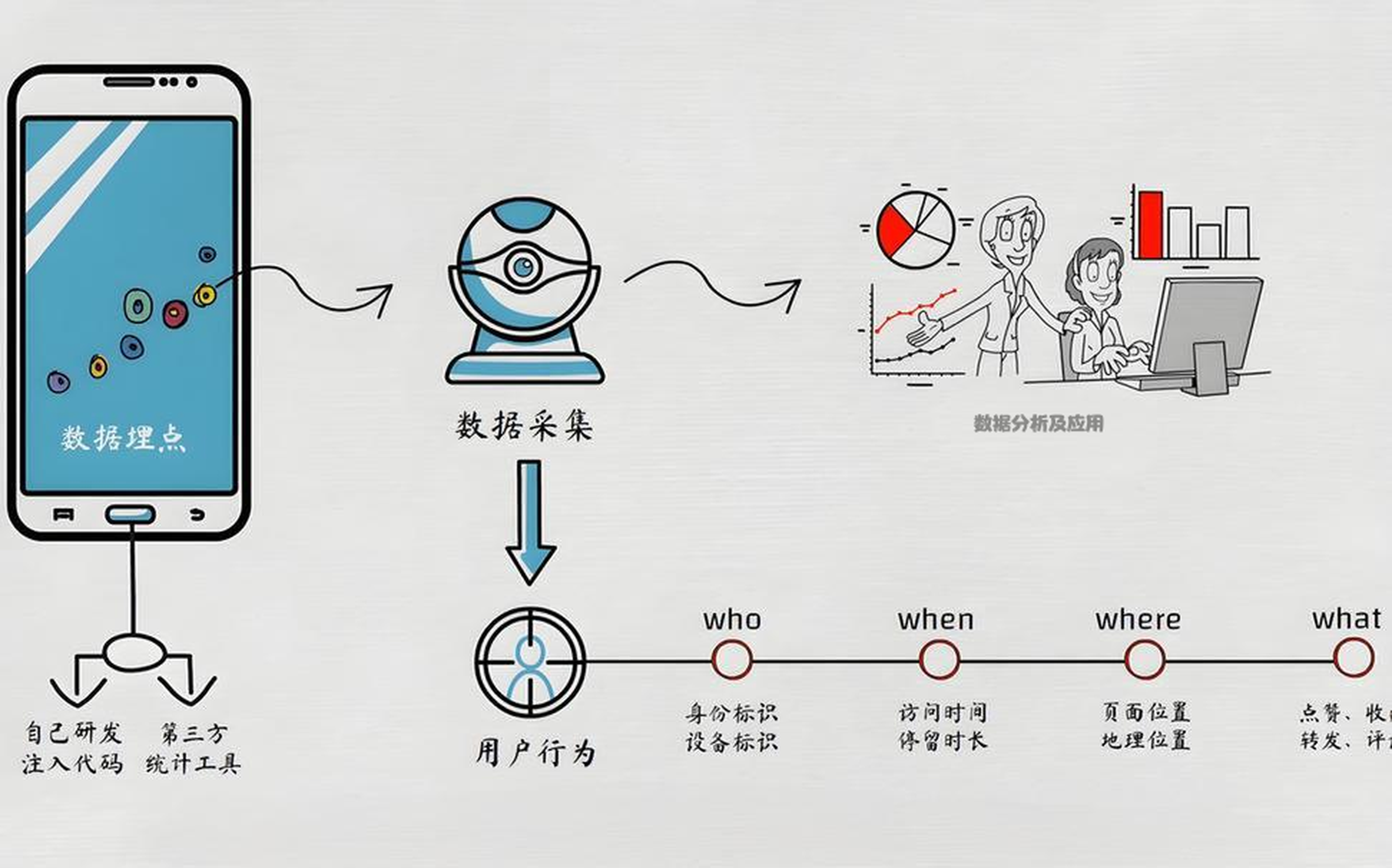 数据价值的起点是埋点,埋点的起点则是目标数据的收集,即所谓的需要收集哪些数据;目标数据收集的关键则是必要的全面,即业务或产品提出需求需要的数据进行埋点,而不是埋点越全越好,本质上用的是产品迭代的飞轮效应,而不是在设计阶段就用有限的时间去追求和挑战无限的全面。