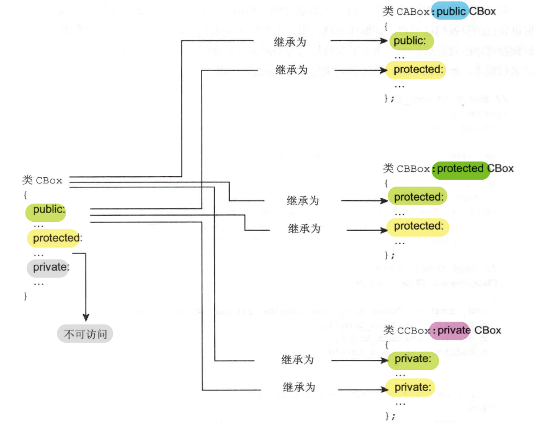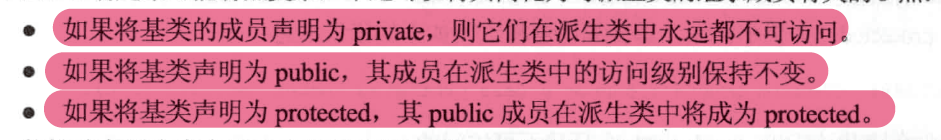 };基类中的private数据成员,派生类中的成员函数不能访问。