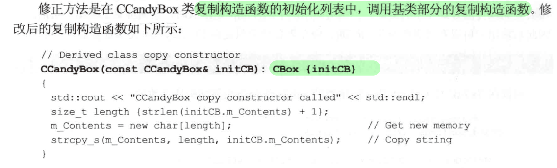 public://新增的数据成员char* contents;//不继承 构造函数(包括复制构造函数)、析构函数、重载赋值运算符(=)explicit CCandyBox(const char* str = "Candy") // Constructor{size_t length{ strlen(str) + 1 };contents = new char[length];strcpy_s(contents, length, str);}CCandyBox(const CCandyBox& box) = delete; //= delete 关键字允许开发者显式禁止编译器自动生成某些函数CCandyBox& operator=(const CCandyBox& box) = delete;~CCandyBox() // Destructor{delete[] contents;}//新增的函数成员void boxShow(){std::cout << contents << std::endl;}