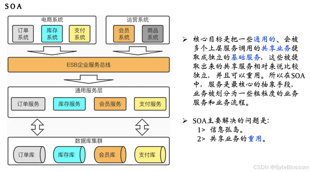 SOA关注的是服务的重用性及解决信息孤岛问题。