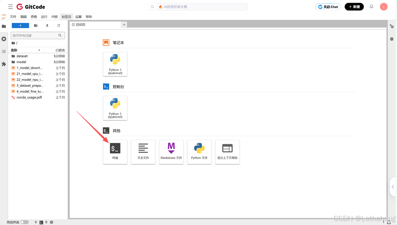创建成功后,在页面中打开Notebook的Terminal终端,进行环境验证: