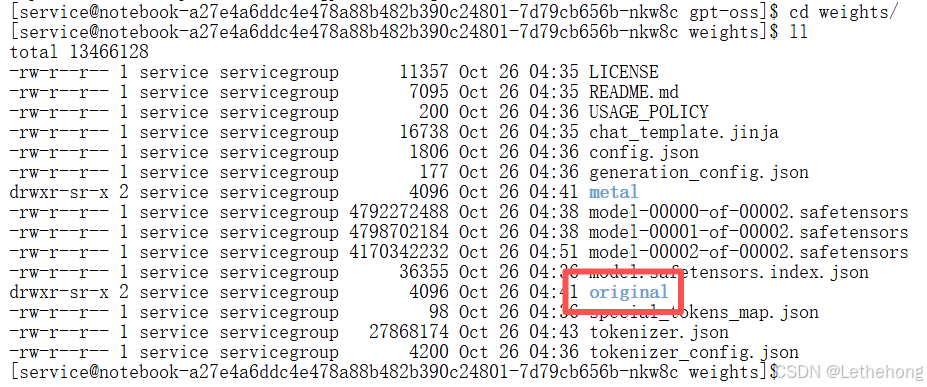 下载完成后,权重文件将会保存在weights/original目录下,包括模型分片文件。