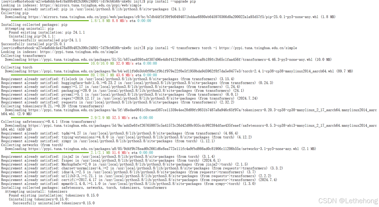 pip install -U transformers torch -i https://pypi.tuna.tsinghua.edu.cn/simple